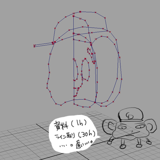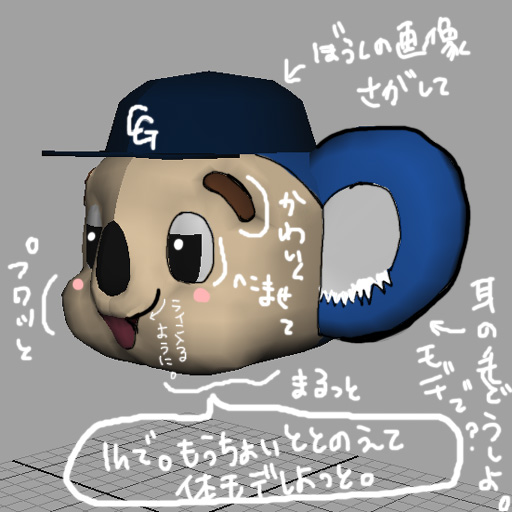 MMDにもっていけたらなとひそかに企んでいるのでポリゴン数は1万~2万で作成予定です。(なんて贅沢な!!!笑)髪の毛がない分プリッと感に力が注ぎこめそうww